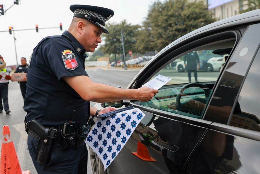 La actividad se llevó a cabo en el cruce de las calles Diego Rivera y Batallón de San Patricio, en la zona de San Agustín, y consistió en la entrega de galletas con imágenes de policías viales, acompañadas de trípticos informativos con recomendaciones dirigidas a conductores y peatones.