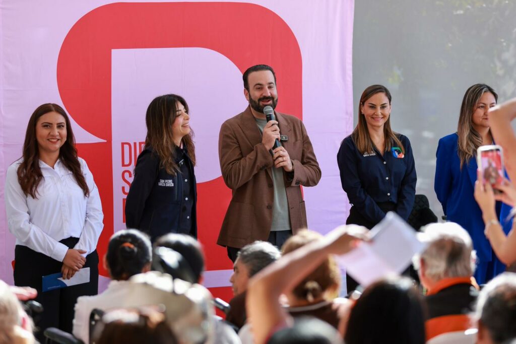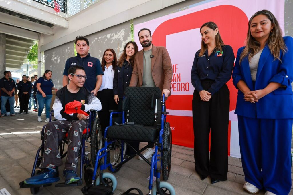 El Alcalde del Municipio de San Pedro, Mauricio Farah Giacomán, realizó la entrega de apoyos funcionales y tarjetas del programa alimentario a más de 100 ciudadanos habitantes de la zona poniente de la ciudad, con el propósito de promover la prevención en materia de salud y el bienestar integral de la población.