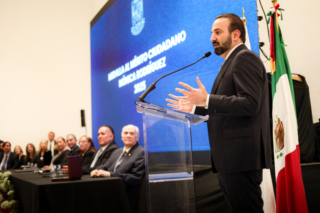 En sesión solemne de Cabildo celebrada en Plaza Fátima, el Ayuntamiento de San Pedro Garza García entregó la Medalla al Mérito Ciudadano “Mónica Rodríguez” 2025 a Alejandra Fernández Garza y José Luis Coindreau García, en reconocimiento a sus destacadas contribuciones al desarrollo y fortalecimiento de la comunidad.