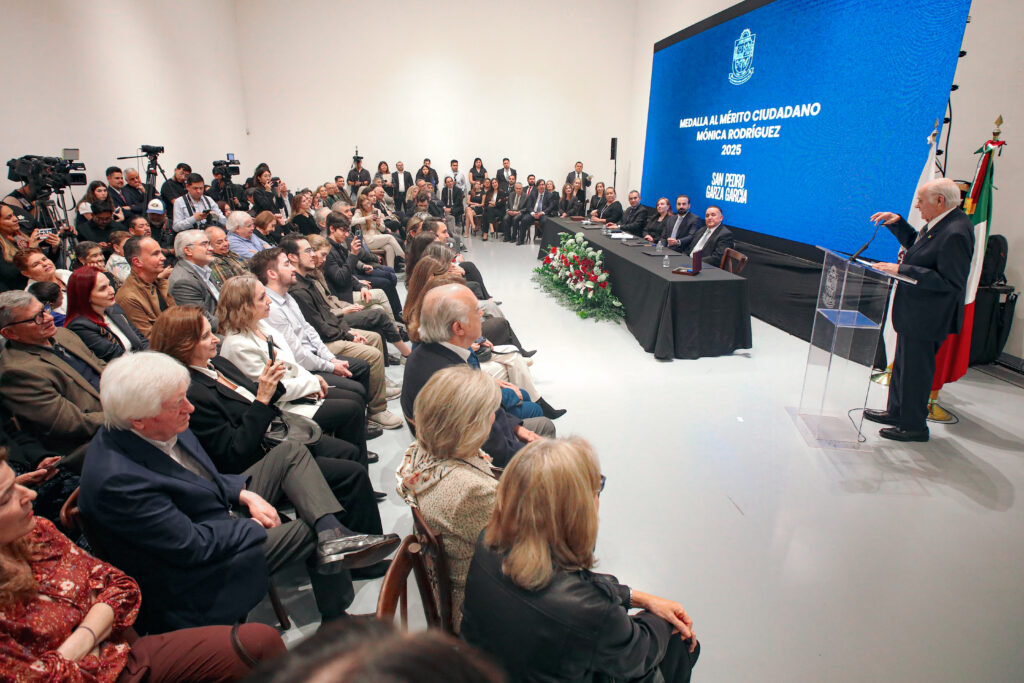 La Medalla al Mérito Ciudadano “Mónica Rodríguez” es el máximo reconocimiento que otorga el Ayuntamiento a personas originarias o residentes del municipio que se hayan distinguido por su aportación significativa a la vida pública, social, cultural o económica de San Pedro, así como por su compromiso con los más altos valores cívicos.