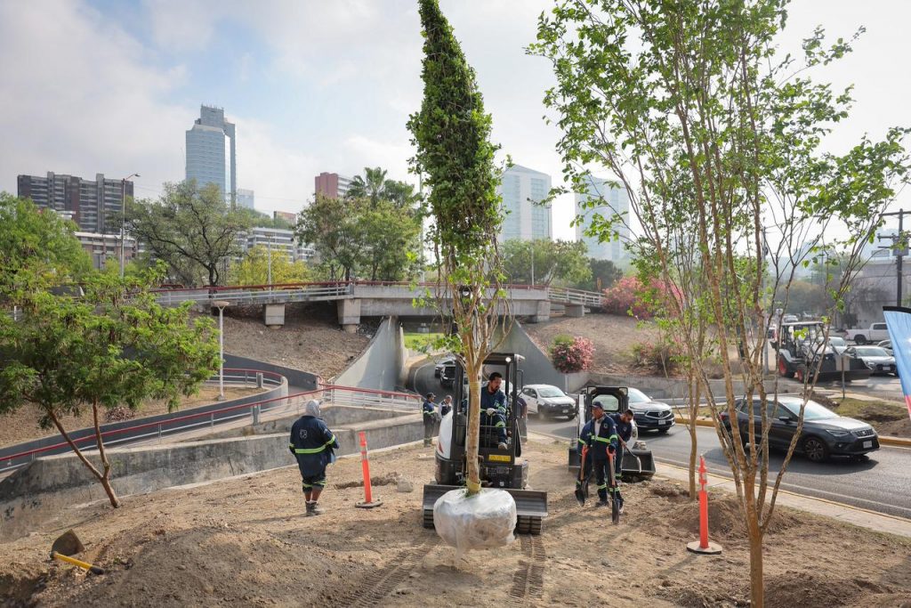 En este punto se plantarán 20 árboles nativos, entre ellos crespones, ébanos, huizaches y mezquites, seleccionados por su resistencia a condiciones climáticas adversas, plagas y enfermedades, lo que permitirá optimizar su mantenimiento.