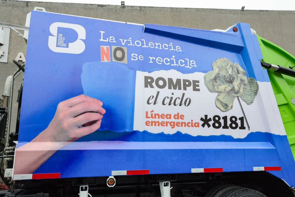 Durante las próximas semanas, unidades de recolección portarán el mensaje “La violencia no se recicla” y la línea *8181, con el fin de mantener presente en la comunidad la importancia de la prevención, el acompañamiento y la denuncia.