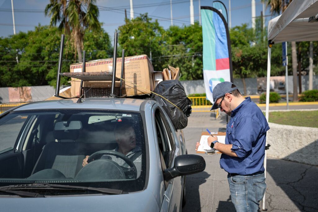 Desde las 9:00 a 12:00 horas de este sábado 11 de octubre, la población comenzó a llegar al estacionamiento del Auditorio San Pedro para intercambiar su material reciclable por productos de limpieza, árboles y composta.