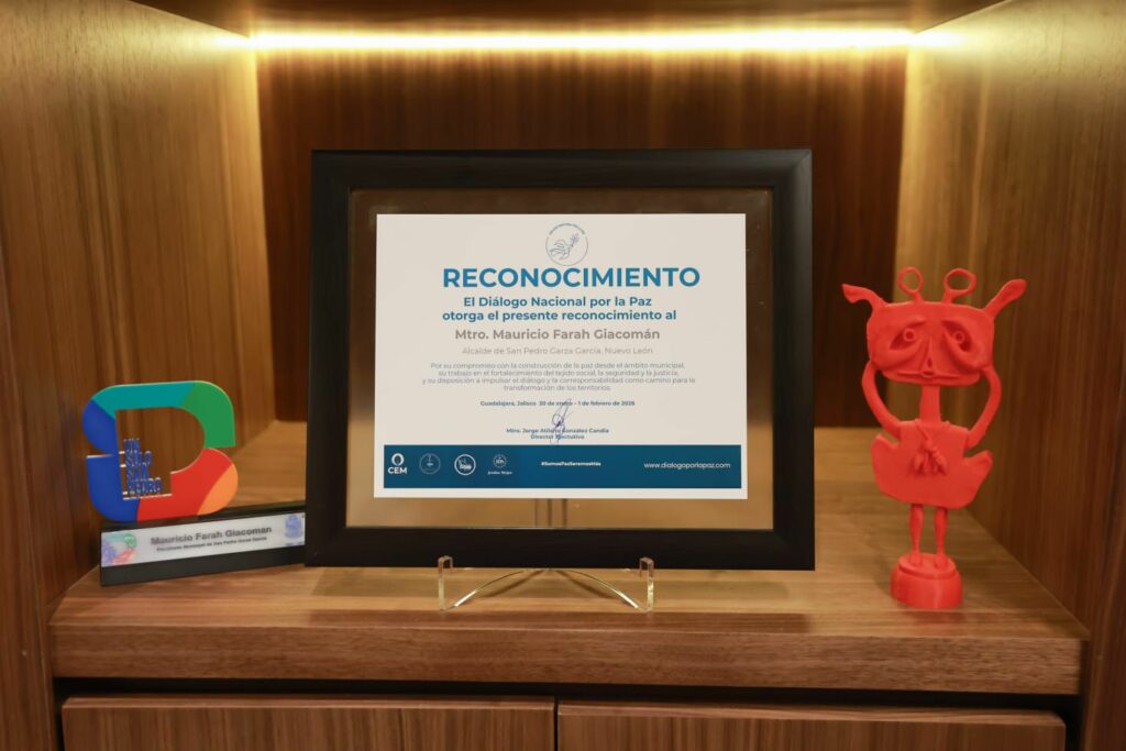 El Municipio de San Pedro Garza García recibió un reconocimiento en el marco del Segundo Diálogo Nacional por la Paz, por su compromiso con la construcción de la paz desde el ámbito municipal, en una ceremonia realizada en Guadalajara.